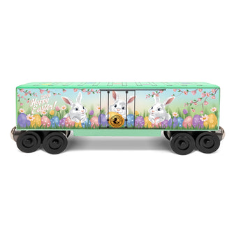 The Green Bunny Hi-Cube is a fresh spring green hi-cube car featuring our Easter design. Handcrafted and limited edition, it’s a bright seasonal addition to any Whittle train layout.
