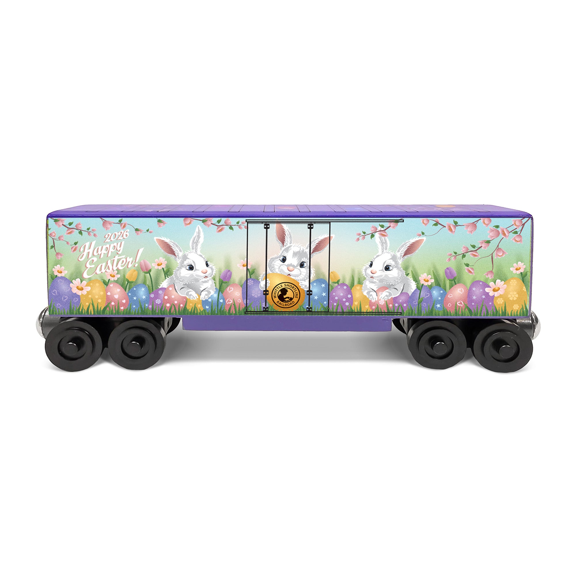 The Purple Bunny Hi-Cube is a playful purple hi-cube car with our Easter design. Handcrafted and produced for a short time, it adds a fun pop of color to your spring train display.