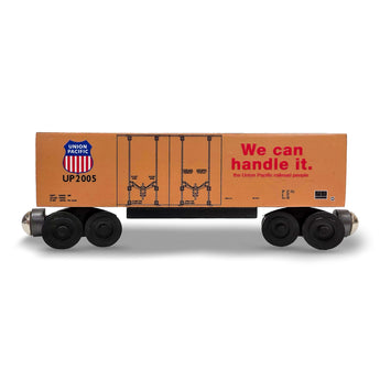 A case of crossed wires at the paint bench made this Pacific Fruit Express HiCube Boxcar carry a Union Pacific graphic — a fun mismatch that makes each piece a true original.